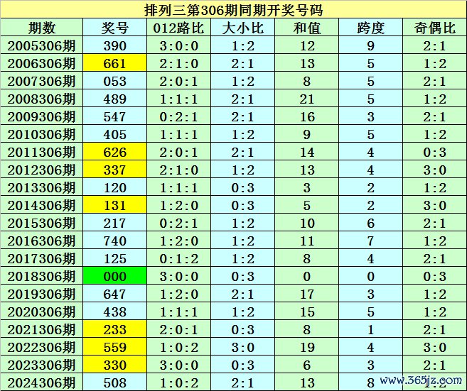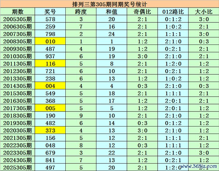 上期总结:胪列三第2025305期奖号为497,组选类型为组六,奖号大小比为2:1,012路比为1:2:0,奇偶比为2:1。